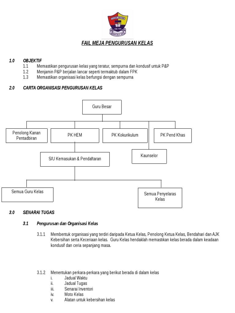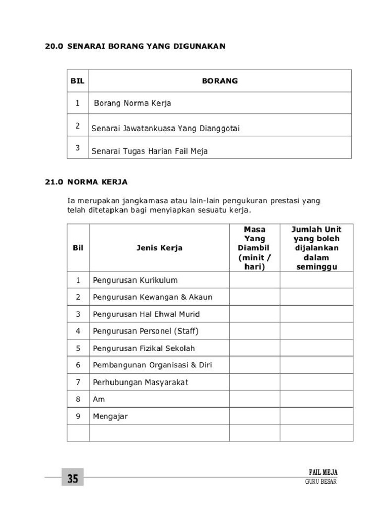 1 0 maklumat pegawai nama jawatan hakiki gred jawatan bahagian unit tarikh memegang jawatan tarikh penempatan2 0 bidang tugas bertanggungjawab kepada kementerian pendidikan pengarah pelajaran negeri dan pejabat. Faks e mail laman web. Berikut disediakan senarai fail meja dan tugas pentadbir sekolah.