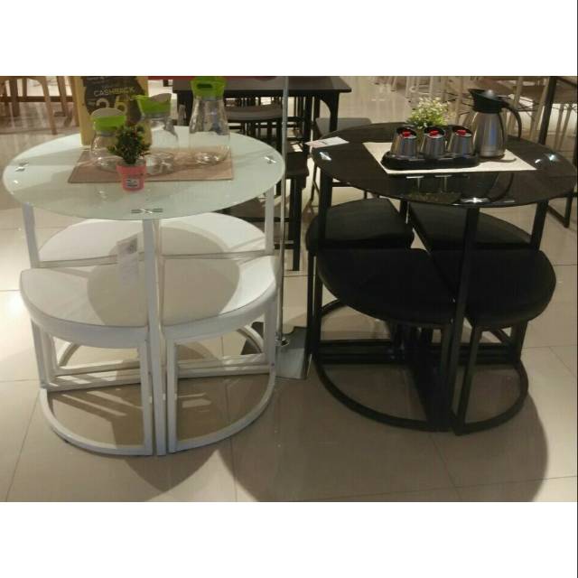 Dari ukuran kecil dengan 2 dudukan untuk ruang makan minimalis dengan 4 dudukan 6 dudukan atau 10 dudukan setiap meja makan kami dibuat kokoh dan tahan lama serta tersedia dalam beragam model untuk memenuhi apa pun gaya anda kami juga menyediakan meja yang dapat dipanjangkan sehingga anda selalu. Jual beli online aman dan nyaman hanya di tokopedia. Salah satu bentuk dan fungsi lain dari sebuah coffee table adalah coffee table bundar atau bulat dan bermaterial kaca dengan 4 bangku plastik sebagai pelengkap.