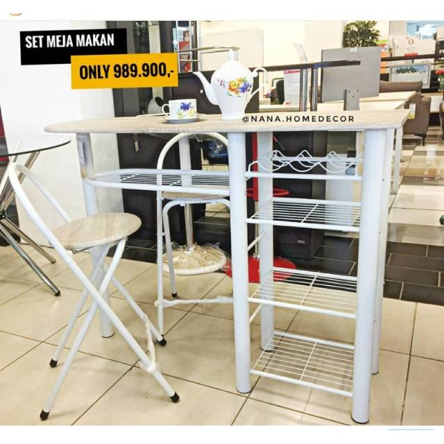 Jual makan makan cafe bar pilihan meja makan lipat dari kayu unik minimalis harga terbaru informa official cicilan 0 free ongkir. Geser agak ke dalam mendekati dapur kini ada meja makan kaca cantik ini yang membuat makanan di meja akan semakin cantik tampilannya. Memiliki desain minimalis dengan nuansa warna putih set meja makan maeve ini akan membuat suasana ruang makan jadi lebih nyaman.