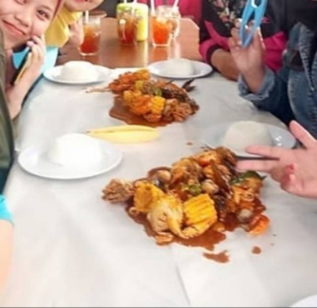 Plastik meja shell out. Ala yang femes seafood konsep tanpa pinggan tu. Bila pelanggan sudah bersedia barulah lauk dituang ke atas meja yang dialas dengan plastik putih. Buat sendiri lagi jimat la weiii.